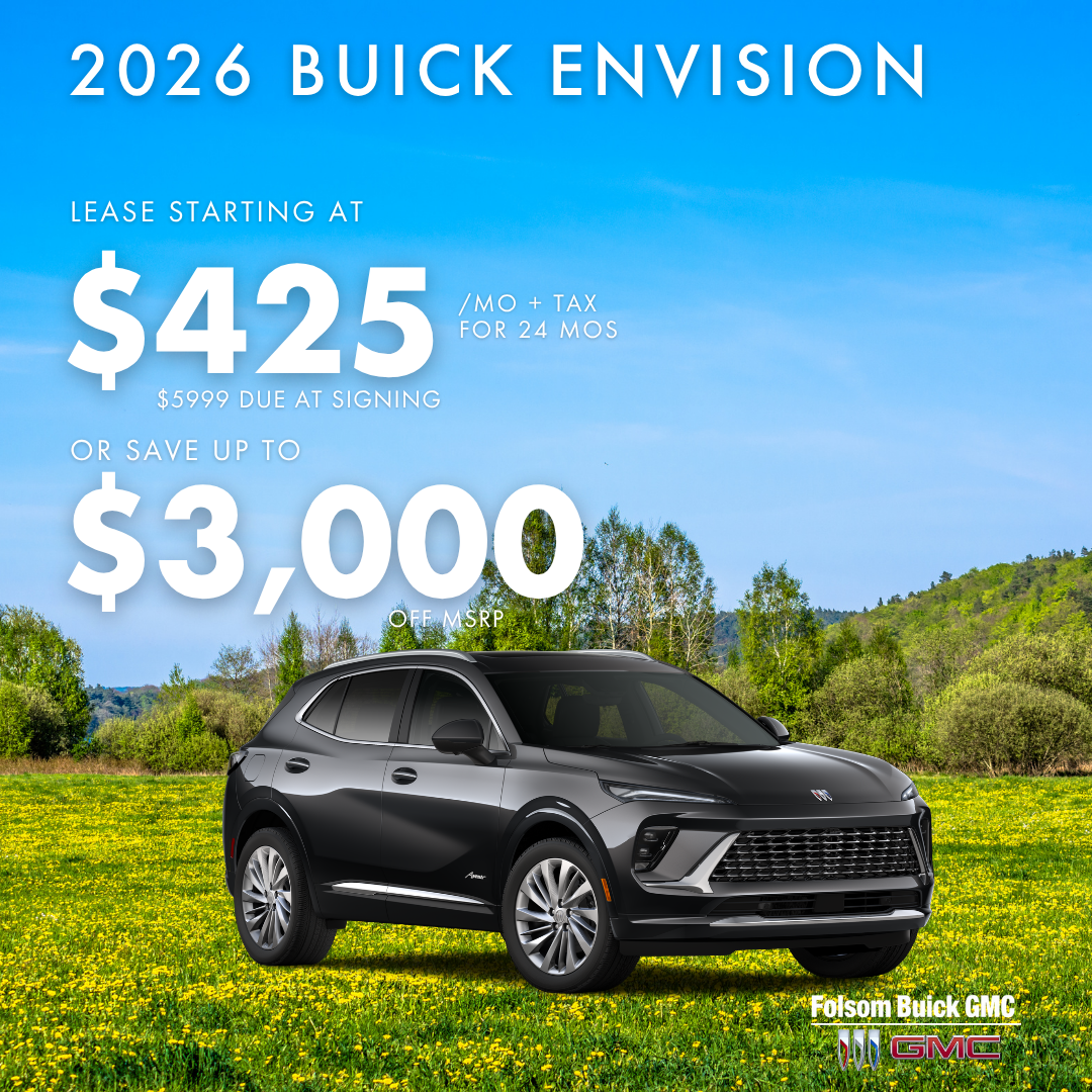 Disclaimer: Lease offer applies to a 2026 Buick Envision AWD. One vehicle available at this price — Stock #TD017152. MSRP $45,990. Lease for $425 per month plus tax for 24 months with $5,999 due at signing from customer cash. Amount due at signing includes the first monthly payment, $6,317.18 capitalized cost reduction, a $1,250 Lease Loyalty incentive for current Buick or GMC lessees (2021 or newer; no trade-in required), $250 Buick CCR, and a $695 GM Financial acquisition fee, plus applicable tax, title, license, and dealer documentation fees. No security deposit required. Subject to approved credit through GM Financial. Purchase option at lease end is $33,112.80. Lessee responsible for $0.25 per mile over 10,000 miles per year, excess wear and tear, and a $495 disposition fee if the vehicle is not purchased at lease end. Balance of the manufacturer’s new vehicle limited warranty applies from the original in-service date. All offers subject to prior sale and program eligibility. See dealer for complete details. Offer expires 04/30/2026.Disclaimer: This purchase offer applies to a 2026 Buick Envision AWD. One vehicle available at this price — Stock #TD017152. Balance of the manufacturer’s new vehicle limited warranty applies from the original in-service date. MSRP $45,990. Offer includes $2,500 dealer discount and $500 Buick/GMC rebate for eligible customers. Total savings of $3,000 brings the advertised price to $42,990 before applicable tax, title, license, and dealer documentation fees. Incentives may not be compatible with lease offers, special financing, or other promotional programs. Prices exclude government fees, taxes, finance charges, document processing fees, electronic filing fees, emissions testing fees, and optional accessories. All offers subject to prior sale, residency restrictions, and program eligibility. Vehicle images are for illustration purposes only and may not represent the exact vehicle. See dealer for complete details. Offer expires 04/30/2026.